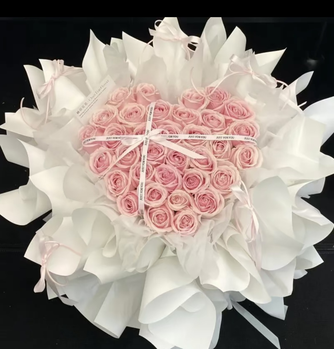 【粉妆玉砌】33/52朵粉玫瑰心形花束生日礼物约会花束送女友爱人表白鲜花花束花店送花上门